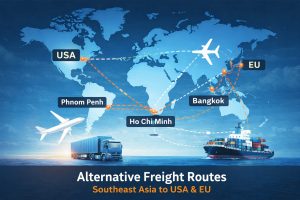 Due to occasional saturation and rates for shipments from Phnom Penh, ELPxpress offers services by truck, via BANGKOK or HO CHI MINH reducing both cost and transit times for your impatient clients.